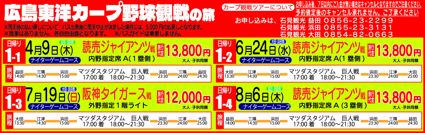 広島東洋カープ野球観戦の旅 (日帰り 1-1, 1-2, 1-3, 1-4)